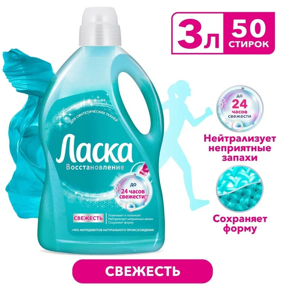 Гель для стирки Ласка Восстановление Уход для всех видов ткани, 4 л (66 стирок), жидкое средство для стирки. Рейтинг товара: 4.9 из 5на основе 63609 …