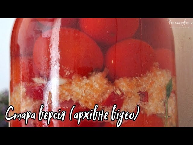 Інгредієнти: Помідори 🍅 листя хрону, вишні, смородини, винограду суцвіття кропу перець горошком часник 🍅 Розсіл 1 л води 1 ст л з чубчиком солі (30-50г) 🍅 В одну 3-літрову банку вміщається 1, 5 л розсолу Процес приготування дивіться тут: https://youtu.