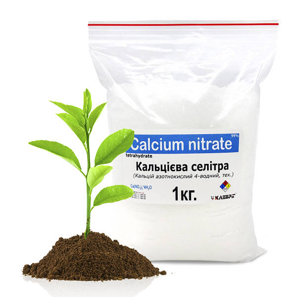 Для його приготування нітрат кальцію розчиняють у воді в пропорції 2г на 1 літр. Далі її використовують для позакореневого підживлення.