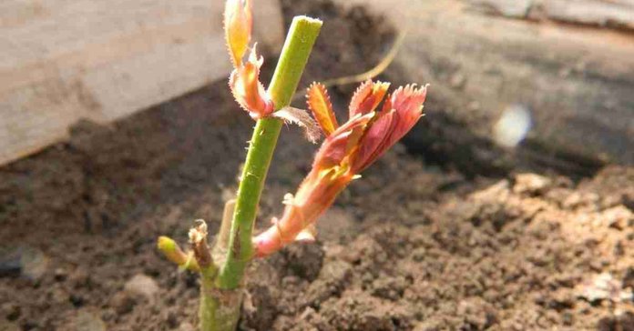 Треба укорінити гілочку, для цього існує кілька способів. Один з них – покласти живець, тобто, гілку, яку використовують для розмноження, у воду на 2 тижні, щодня її змінюючи. Посудину варто тримати у прохолодному світлому місці. Коли троянда укорінилася, мають з'явитись бруньки, які буде видно на живці.