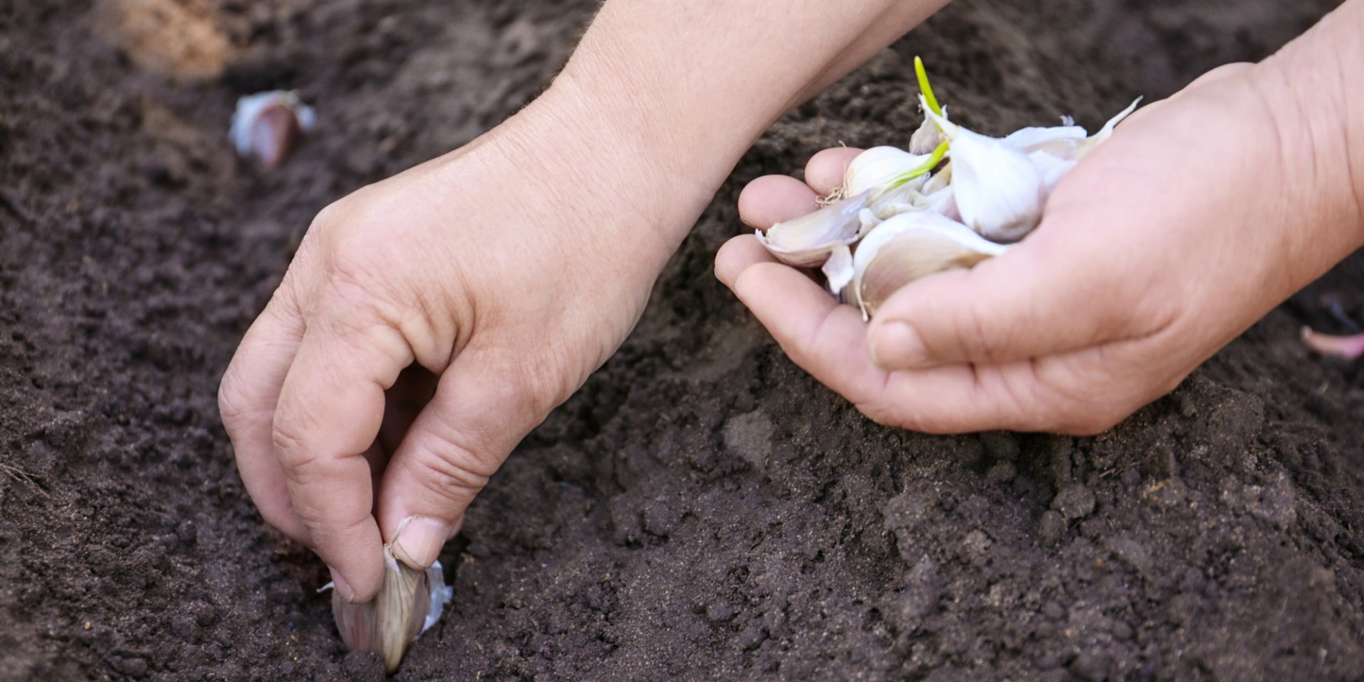 Зробіть неглибокі, до 4 см рядки з міжряддями у 20-30 см. · Часник розкладайте через кожні 8 см для середніх та 12 см для великих зубчиків.