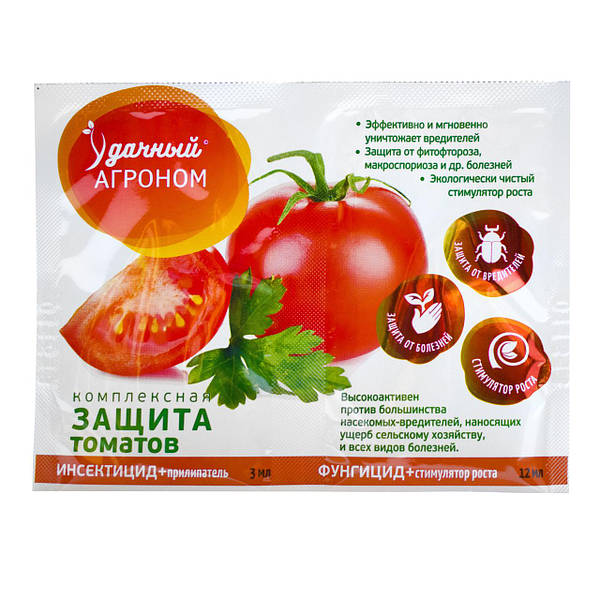 Найпростіше для захисту культури від хвороб використовувати комплексні препарати – фунгіциди для томатів «Блу Бордо» і «Магнікур Нео». Перше обприскування від фітофтори помідорів найкраще провести профілактично у фазі формування стебла і листя. Роблять це фунгіцидом контактної дії «Блу Бордо».